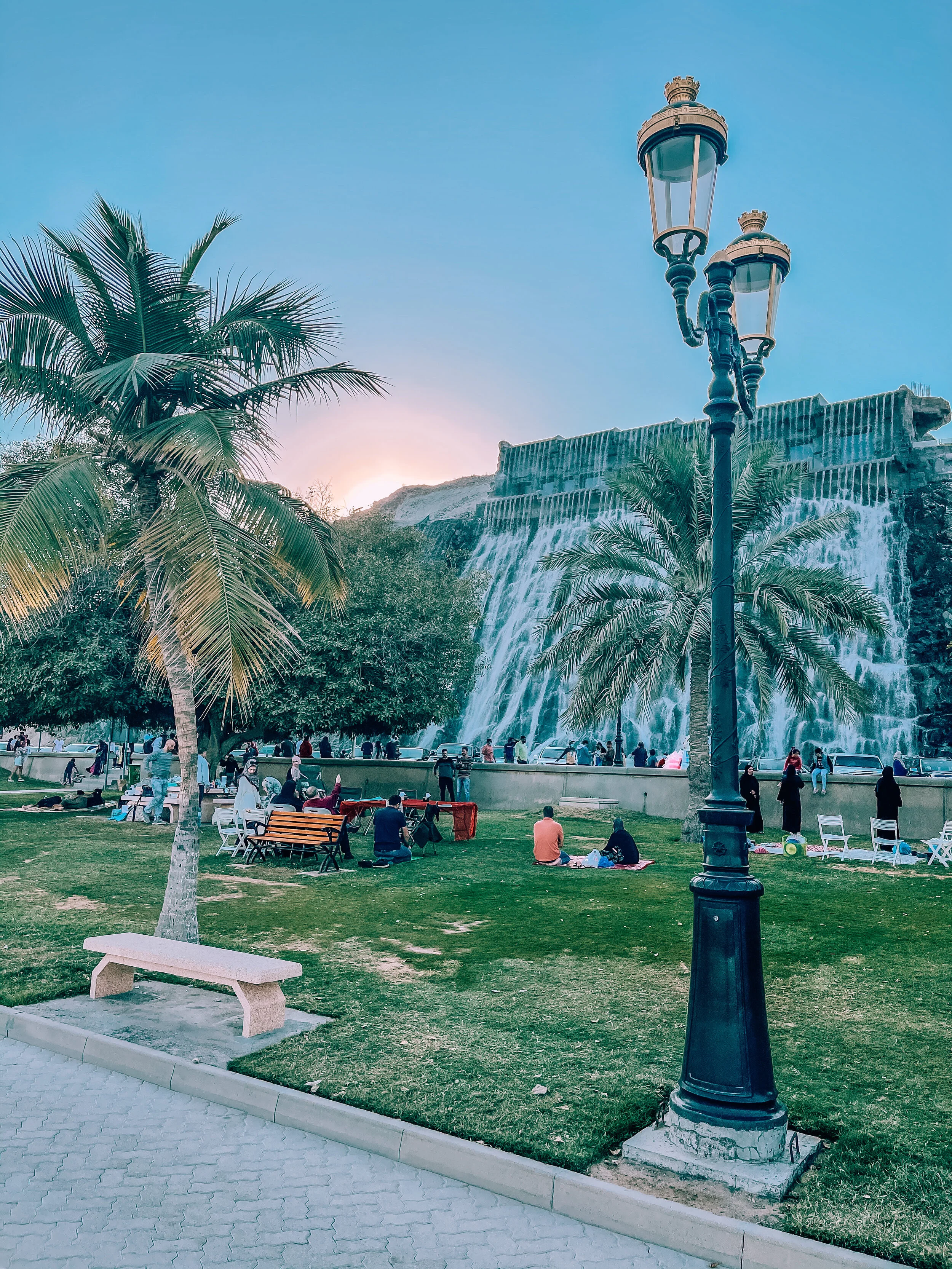 After a delicious lunch, I would suggest a trip to the Khorfakkan Corniche. There, you’ll see the new man-made waterfall as well as the Khorfakkan amphitheater which is inspired by Roman designs. My advice would be to park on an alternative road to avoid the inevitable traffic around both attractions. After, you can head to the Khorfakkan Corniche and Beach area which are also lovely to walk by, or set up a picnic in.